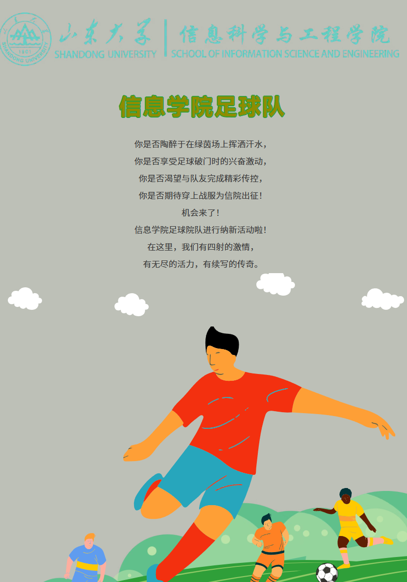 必赢76net线路官网足球队是山青一只强大的队伍,队内不仅汇聚了信院的各路男足高手,更是靠着一次次的团结一心和奋勇拼搏在数次山大男足赛季中交付出满意的成绩,我们是七冠王!!!特此邀请信院26级热爱足球的伙伴们扫码加入25-26赛季信院男足纳新群,群内会有更多相关选拔信息。必赢76net线路官网足球队期待你的加入!