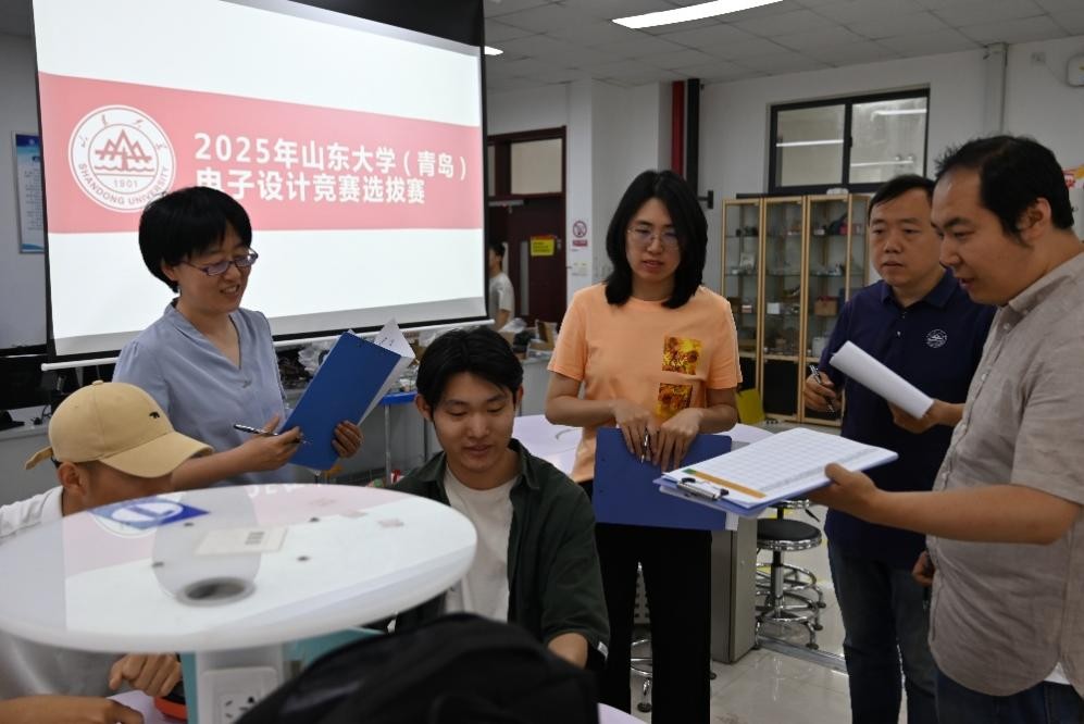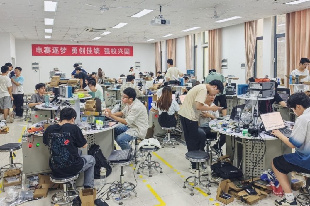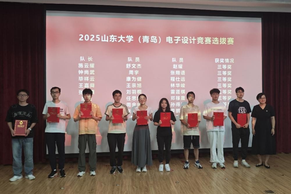 厚积薄发,砥砺前行。面对本届赛事选拔机制的重大调整,学院高度重视、积极应对。自2025年初起便组织多支队伍进入实验室开展系统训练与科学备赛。经过校赛选拔,7月7日,必赢76net线路官网(青岛)电子设计竞赛选拔赛颁奖典礼暨大学生电子设计竞赛暑期培训开班仪式举行,40支队伍120名学生在淦昌苑B座实验室开展为期三周的暑期集训。8月5日,我院38支队伍携作品赴青岛大学参加2025年TI杯全国大学生电子设计竞赛山东赛区现场测评。8月10日,12支队伍进入综合测评环节,最终6支队伍脱颖而出,获得晋级全国总测评复测的资格,并于8月20日至22日赴大连参加全国总测评复测环节,角逐最高奖项。
