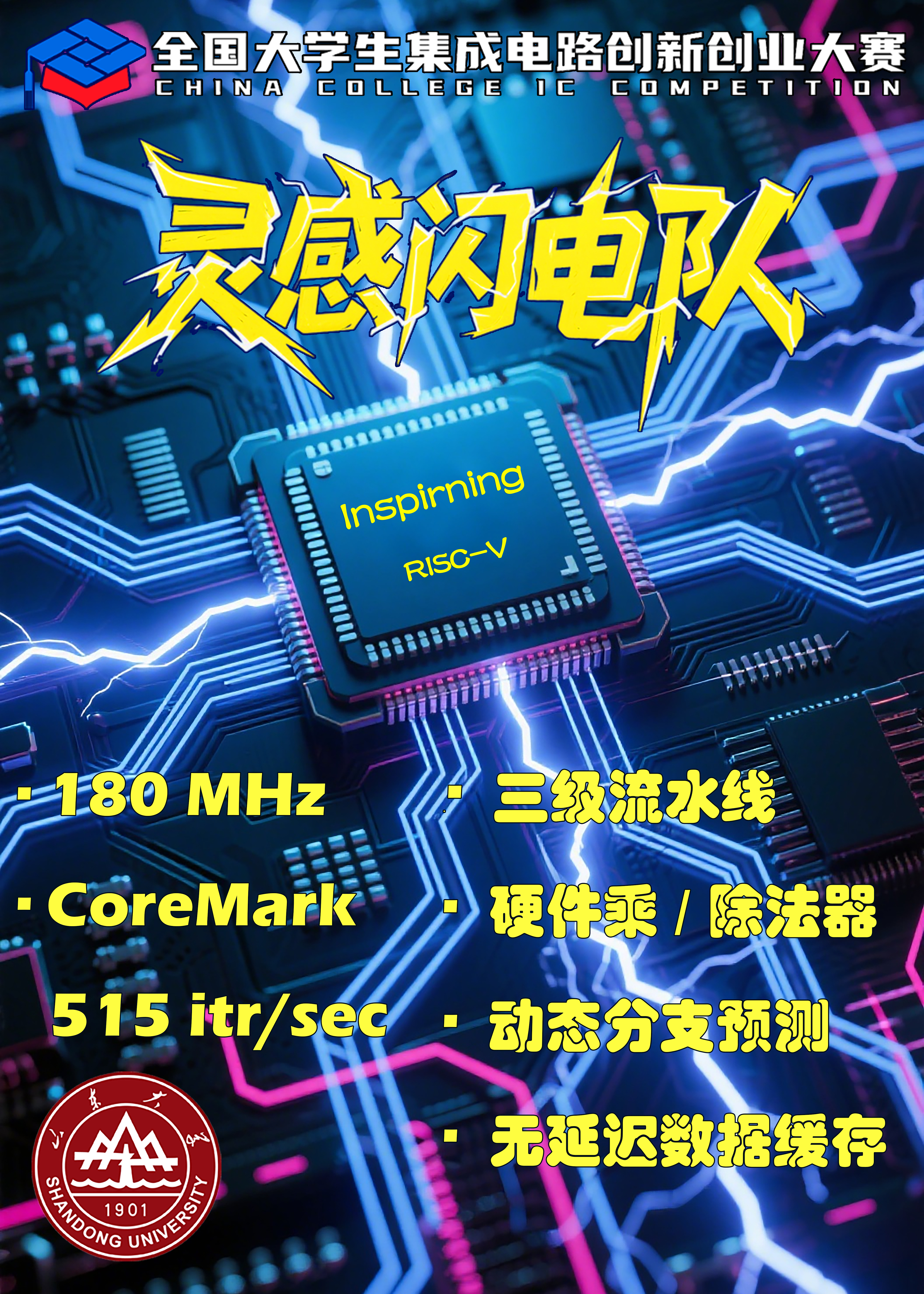 该杯赛赛题为《基于RISC-V指令集的CPU设计》,赛题任务是在FPGA上设计和实现一款基于RISC-V指令集的CPU,完成若干工业应用程序和操作系统的性能测评。团队设计了紧凑的三级流水线CPU,在Kintex-7 FPGA上实现了主频高达180 MHz的高效处理器,该设计集成了高性能三级流水线硬件乘法器和除法器,支持动态分支预测、数据缓存、中断控制等功能,成功流畅运行RT-Thread实时操作系统,在CoreMark性能测试中取得515 iterations/sec的优异成绩,能效比达到2.92 CoreMark/MHz。尤为值得关注的是,该设计仅占用不到10K逻辑资源,通过精巧的架构优化,在简约的流水线结构中实现了超越复杂设计的性能表现,获得评审专家高度评价。
