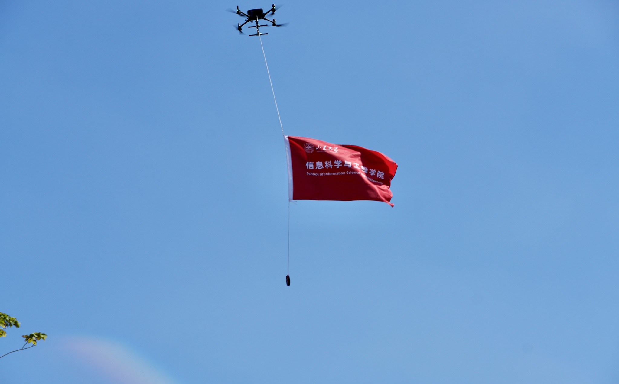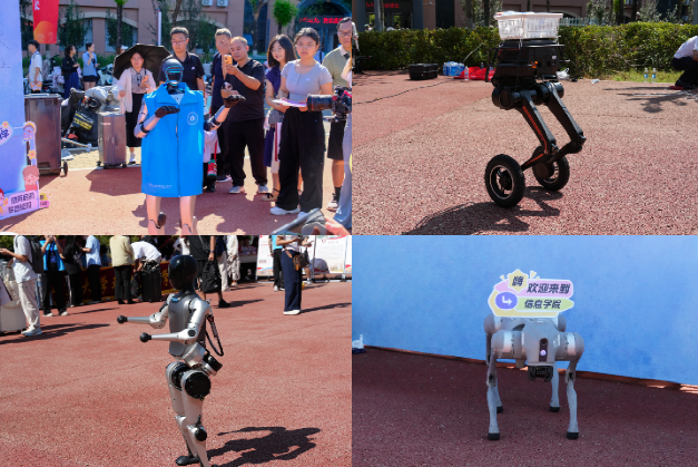 在迎新现场,无人机、机器人、机器狗惊艳亮相,集中展示学院在人工智能等方面的科研成果。机器狗矫健的步伐与灵活的动作让新生们连连惊叹;智能机器人担当“礼仪使者”,新生近距离互动;送水机器人在报到点来回穿梭,为新生和家长送去清凉的矿泉水,让智慧科技与人文关怀巧妙融合,让新生直观感受学科前沿魅力,用科技的语言寄语新生:“这里将是你们探索智能世界的起点”。