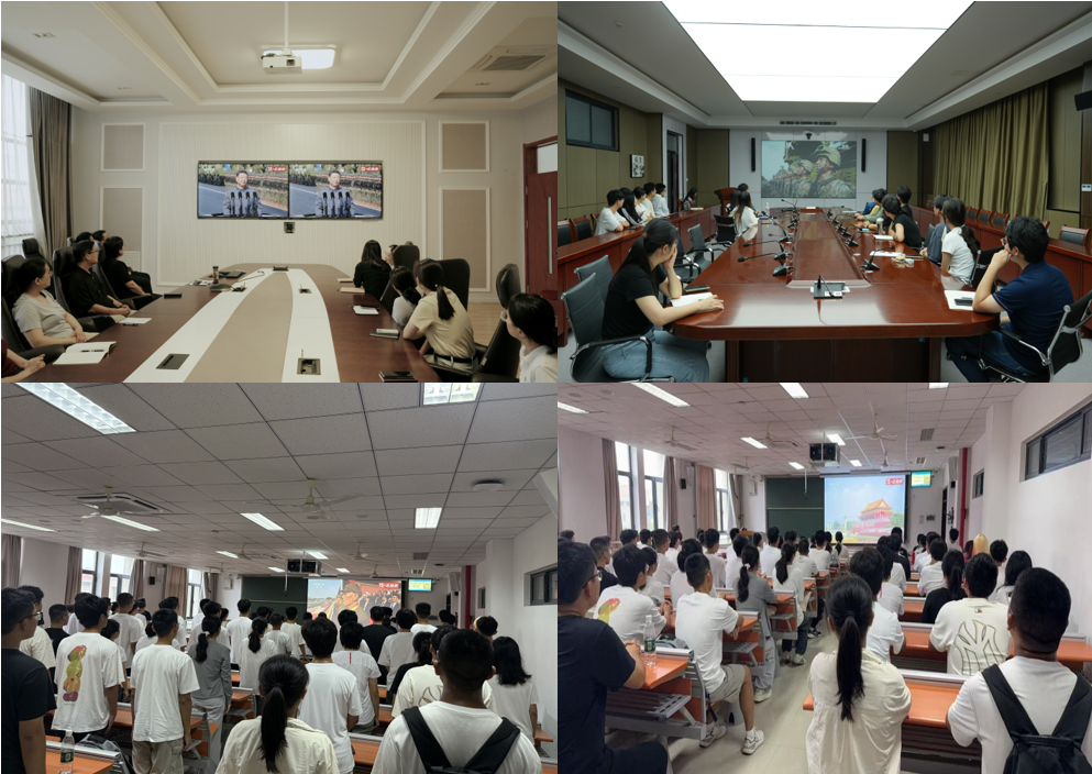 9月3日,纪念中国人民抗日战争暨世界反法西斯战争胜利80周年大会在北京天安门广场隆重举行。中共中央总书记、国家主席、中央军委主席习近平出席大会并检阅部队。必赢76net线路官网全体师生在校内多个场所收听收看大会实况直播,与全国人民一同铭记历史、缅怀先烈、共沐荣光。