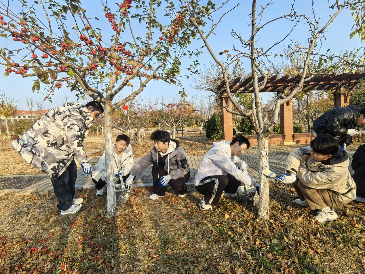 活动现场,同学们分组协作:手持毛刷晕染涂白剂,精准把控70-80公分防护高度,指尖动作里裹着对树木的呵护,深褐枝干渐覆匀净“素衣”,在萧索秋光里漾开整洁暖意。从调试涂白剂配比到默契粉刷,同学们将专业里的严谨思维融入实践,既掌握了防冻防虫的养护技能,也让劳动温度与协作乐趣相融。经过一番辛勤劳作,一棵棵树木都穿上了整齐划一的“白色新衣”,成为冬日校园里一道独特而亮丽的风景线。