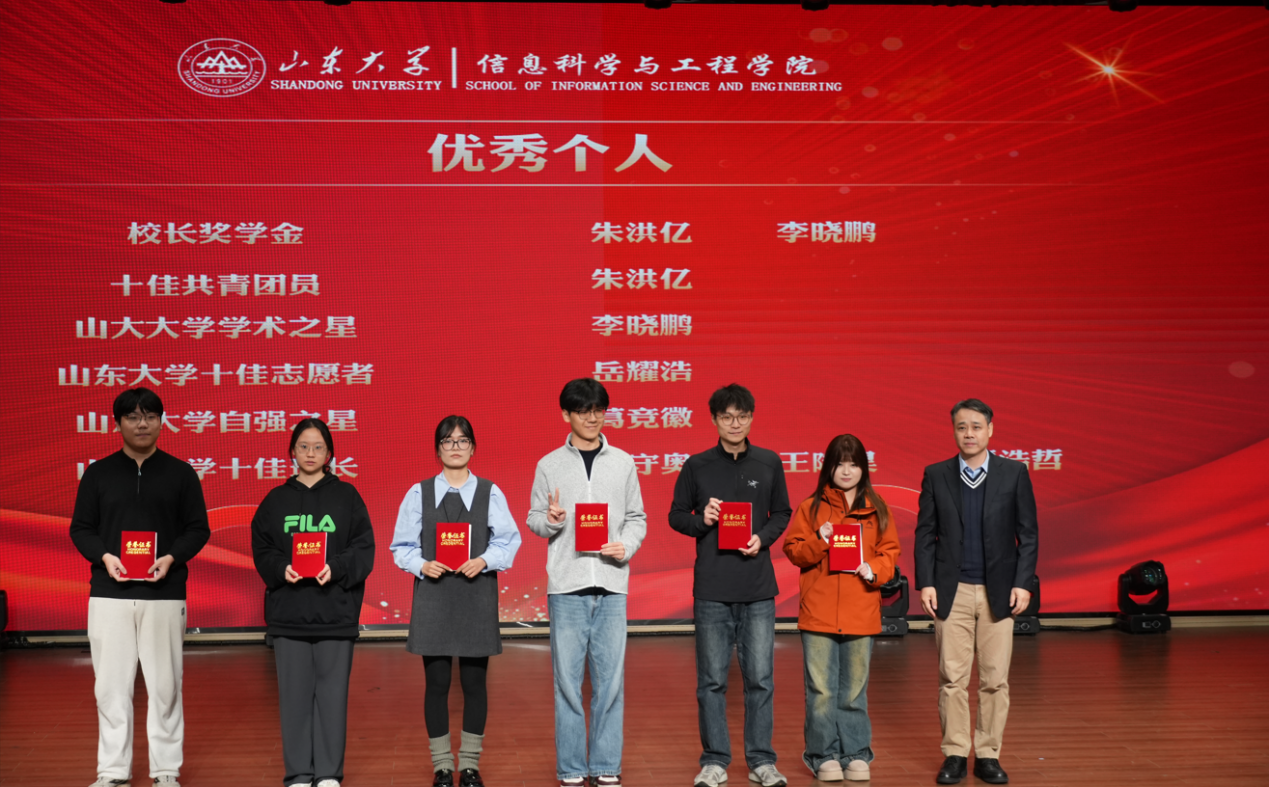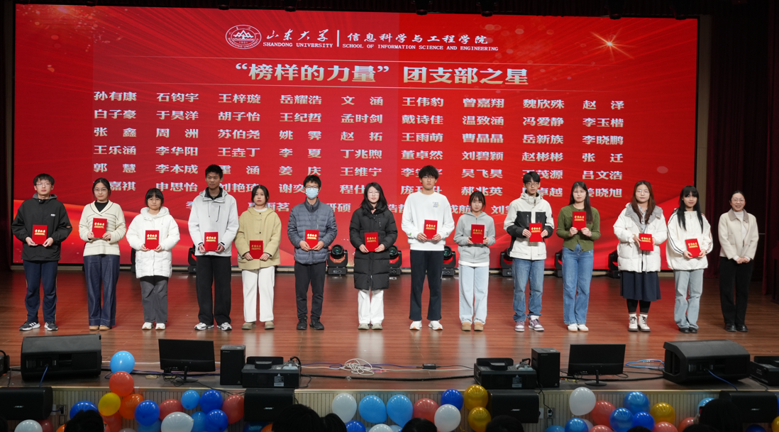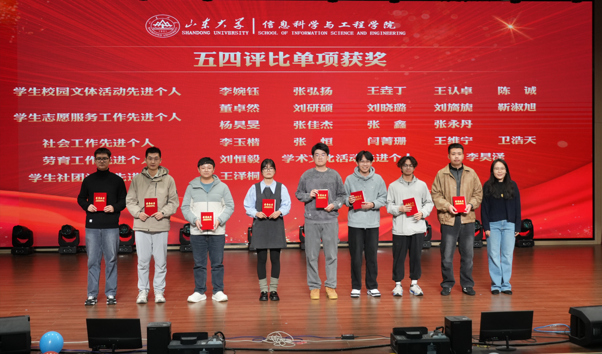 在大会表彰环节,学院领导及辅导员老师依次为2025年度获得优秀共青团员、“榜样的力量”团支部之星、五四评比单项获奖、“榜样的力量”学院榜样人物、优秀学生干部、优秀团干部、国家奖学金、文体赛事冠军团队、优秀个人、优秀集体等奖项的获奖学生进行表彰。