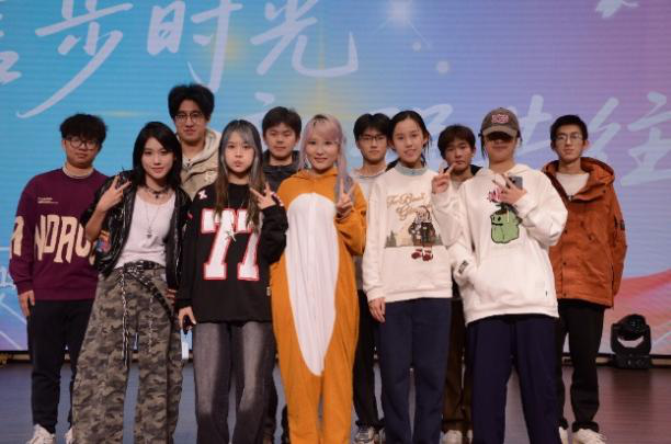 随着灯光转换,晚会进入第二篇章“驻足·光影成章”。在supernova街舞协会充满力量的《history》中,动感的节奏展现出青春的活力与激情。相声协会带来的《武训徒》以幽默诙谐的表演引得全场笑声不断,展现了传统曲艺的独特魅力。张福浩、魏宇豪演唱的《意外》以真挚情感打动人心,刘怡泽、陈奕嘉等同学表演的舞蹈《RUNAWAY BABY》则以轻快活泼的舞步将现场气氛推向高潮。本篇章通过多样化的艺术形式,将青春中那些精彩瞬间定格成永恒的光影记忆。