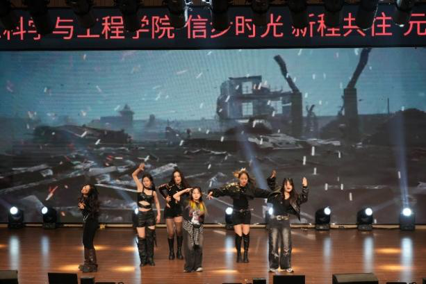 第三篇章在国标舞社优雅演绎的《美女与野兽》中展开,华丽的舞姿讲述着经典的童话故事。王子昕、黄启东合唱的《说好不哭》以深情歌声表达对未来的美好祝愿。侯懿轩、陈玥等同学带来的舞蹈《we go up》以充满朝气的编排展现了青年人积极向上的精神面貌。晚会在全体演唱人员共同献唱的《明天会更好》中圆满落幕,熟悉的旋律承载着对过去的感恩与对未来的憧憬,唱响了全院师生携手共赴新征程的坚定信心。